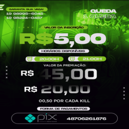 🚩APOSTADO DOS T10🚩DIÁRIO MODO SOLO + MAIS COMPETITIVO DO CENÁRIOINSCRIÇÃO:R$ 05,00🥇:R$45,00🥈:R$20,00(0,50 CENTAVOS POR KILL)1 QUEDA MAPA ABERTOHORÁRIOS 20H 21HPROIBIDO:BUGS, HACK E XITPERMITIDOREVIVER COM MOEDAS, NO CORAÇÃO E QUEBRAS DE CALL